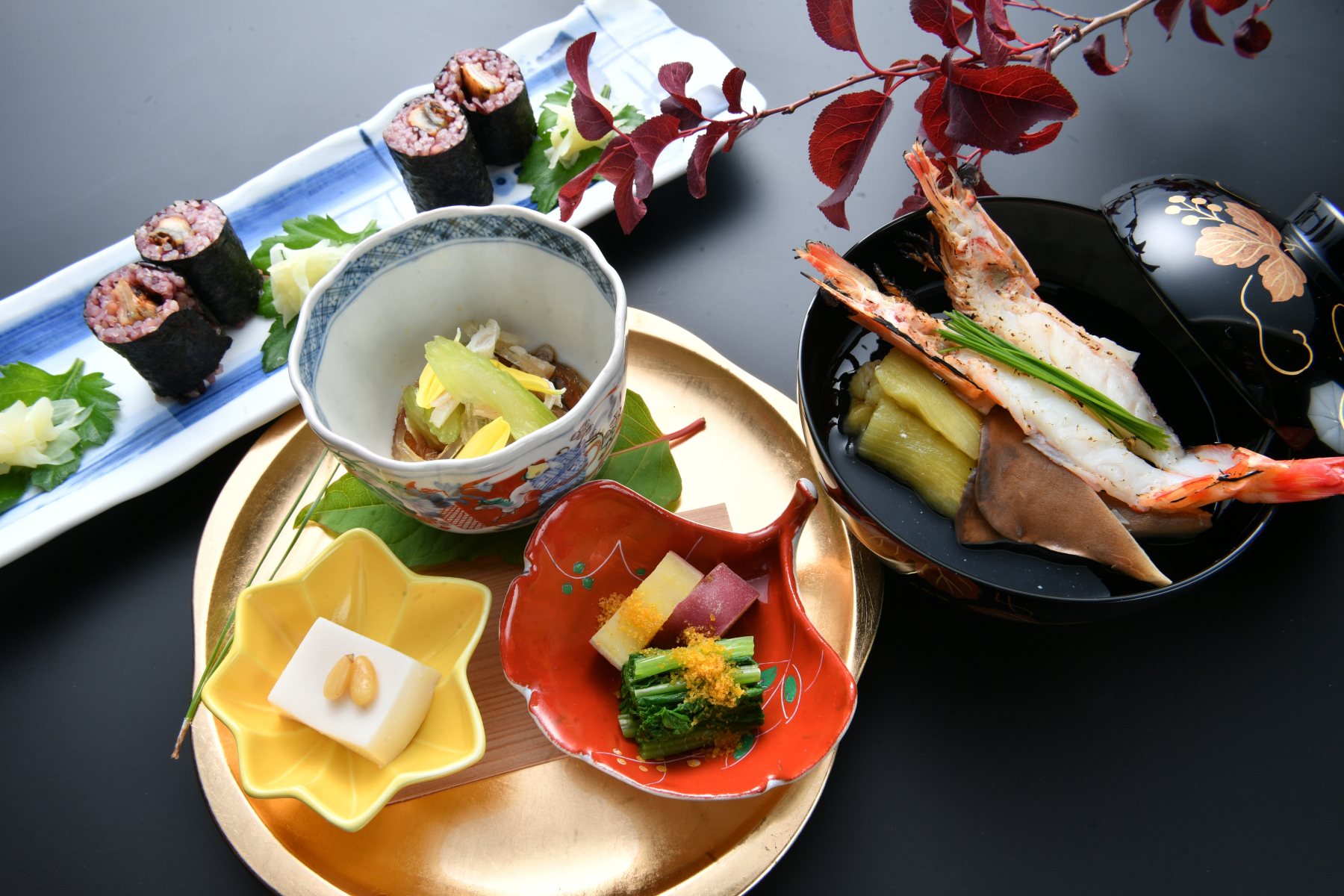 お祝いの席を彩る会席コースは、伊勢海老やお赤飯などお祝いにふさわしいお料理をご用意しております。名物水たきのお祝い会席もございます。